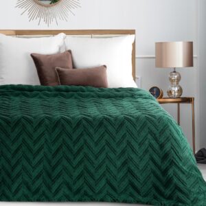 Koc narzuta 200×220 gruby mięciutki puszysty jodełka ciemny zielony