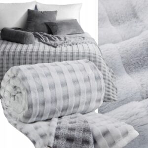 Koc narzuta 200×220 gruby mięciutki puszysty srebrny