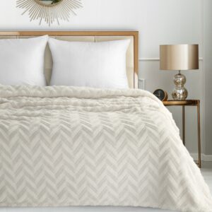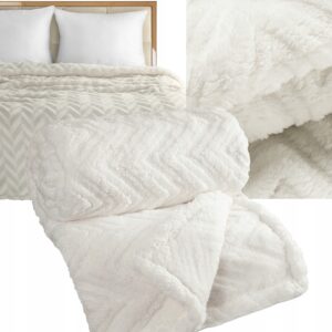 Koc narzuta 200×220 gruby mięciutki puszysty jodełka kremowy