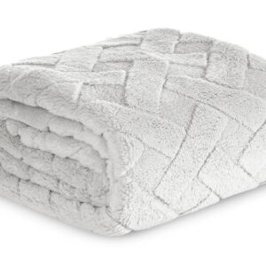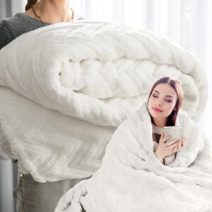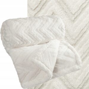 Koc narzuta 70×160 gruby mięciutki puszysty jodełka kremowy