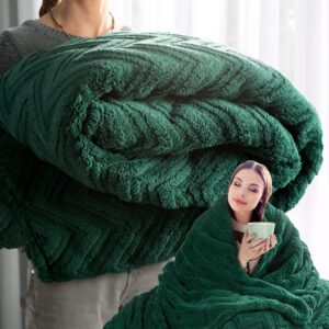 Koc narzuta 70×160 gruby mięciutki puszysty jodełka ciemny zielony