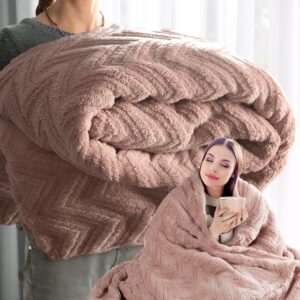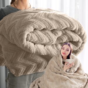 Koc narzuta 70×160 gruby mięciutki puszysty jodełka ciemny beżowy