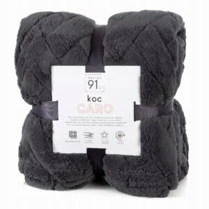 Koc narzuta 70×160 Caro czarny gruby mięciutki puszysty