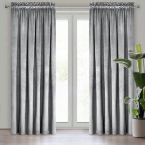 Mięciutka zasłona welwetowa taśma 140×270 srebrny