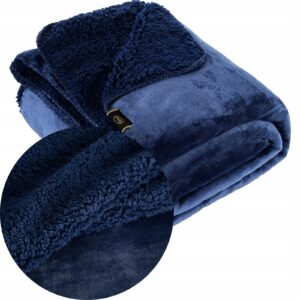 Mięciutki koc narzuta na fotel na kanapę 150 cm x 200 granat