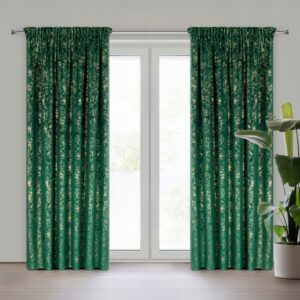 Nowoczesna Zasłona welwetowa 140X250 zielona z delikatnym nadrukiem