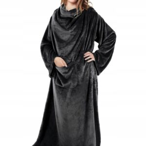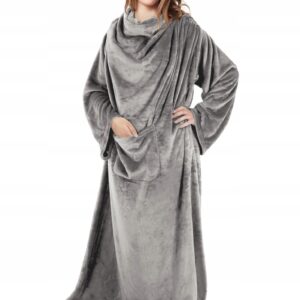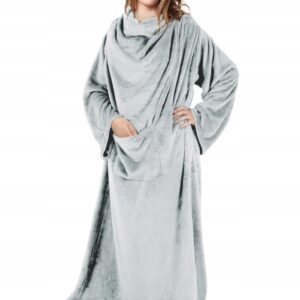 PREZENT Koc Z Rękawami mięciutki cieplutki szlafrok 150×180 stalowy