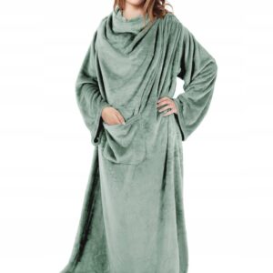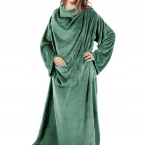 PREZENT Koc Z Rękawami mięciutki cieplutki szlafrok 150×180 c.ziel