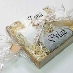 PREZENT ROCZNICA ŚLUBU RĘCZNIK 2 SZT FLOWERBOX