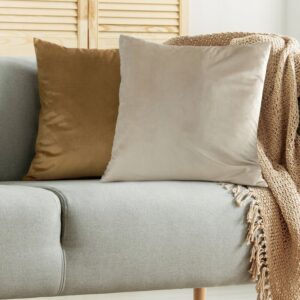 Welwetowa poszewka dekoracyjna 45×45 Jasnobeżowa