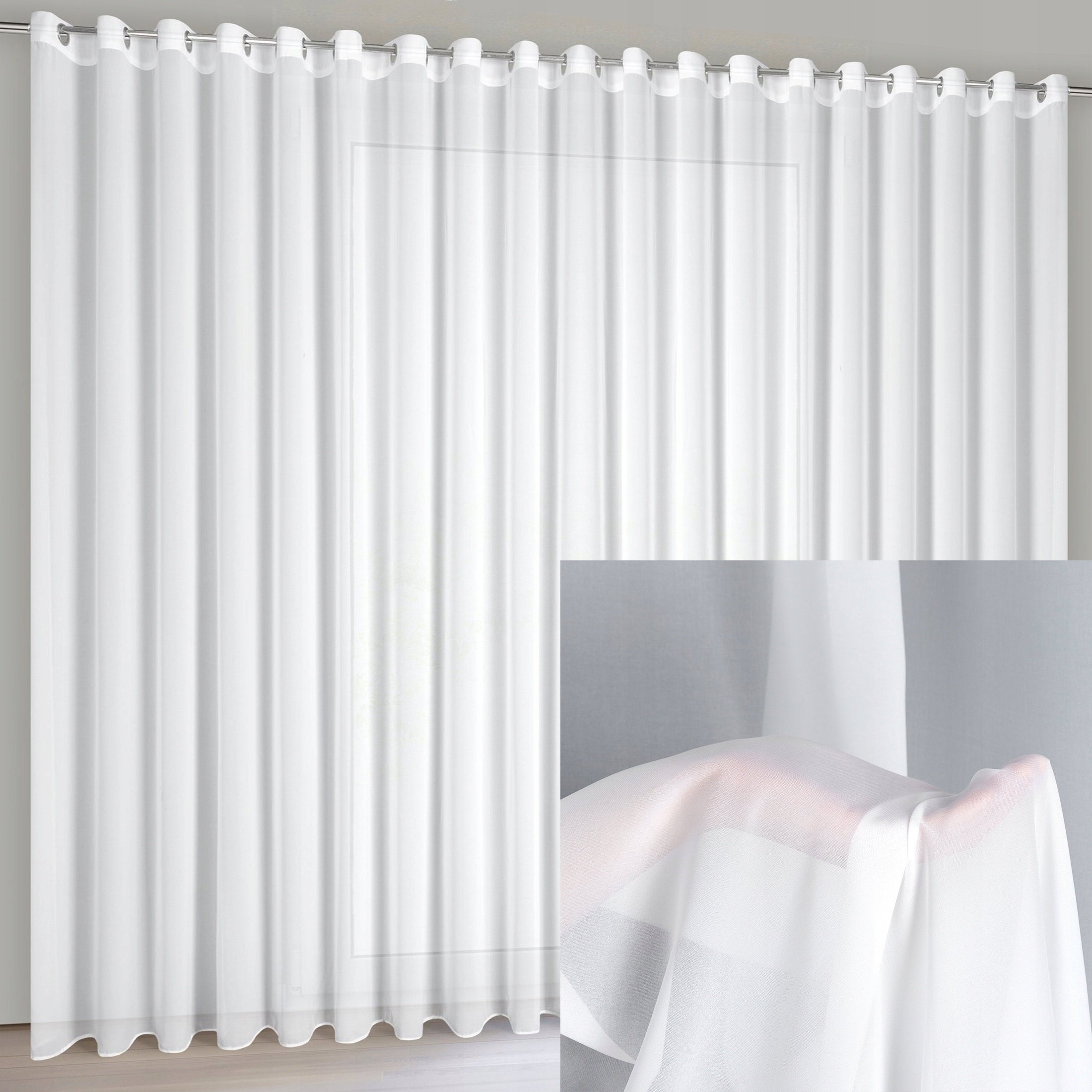 Firana gotowa biała 300×250 przelotka szyfon bez prasowania