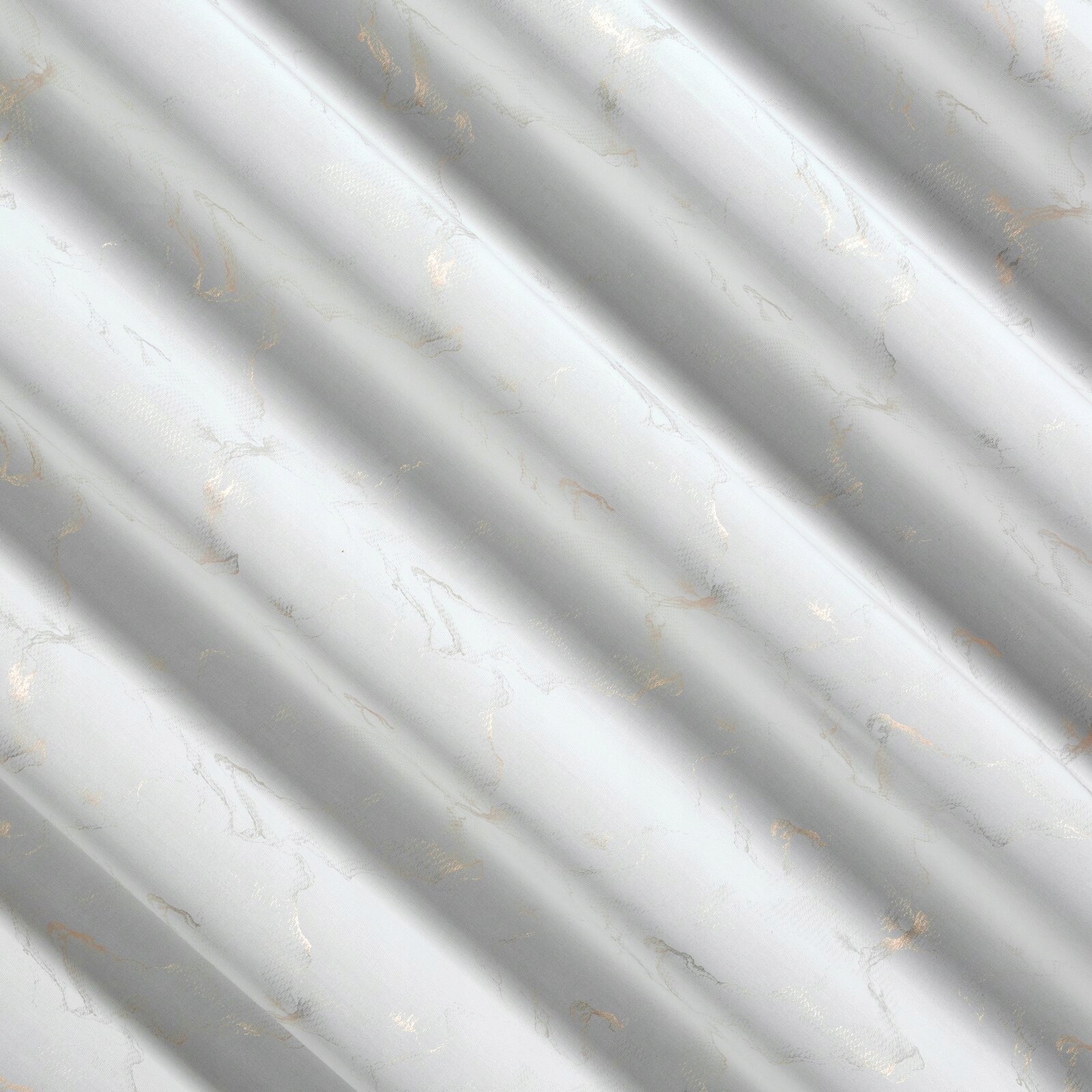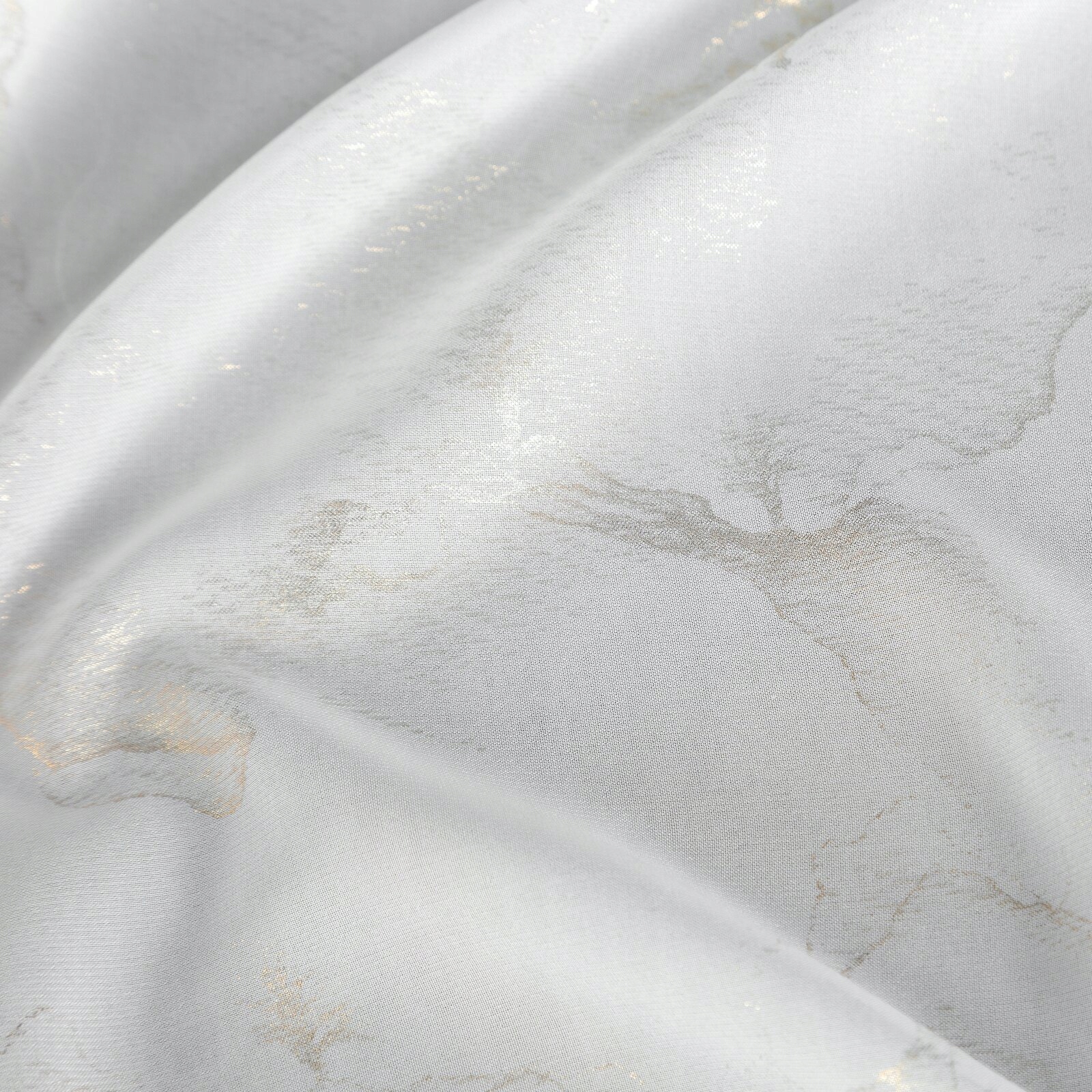 Firana wykonana z miękkiej lejącej tkaniny, zdobiona na całej powierzchni nieregularnym szampańskim nadrukiem.