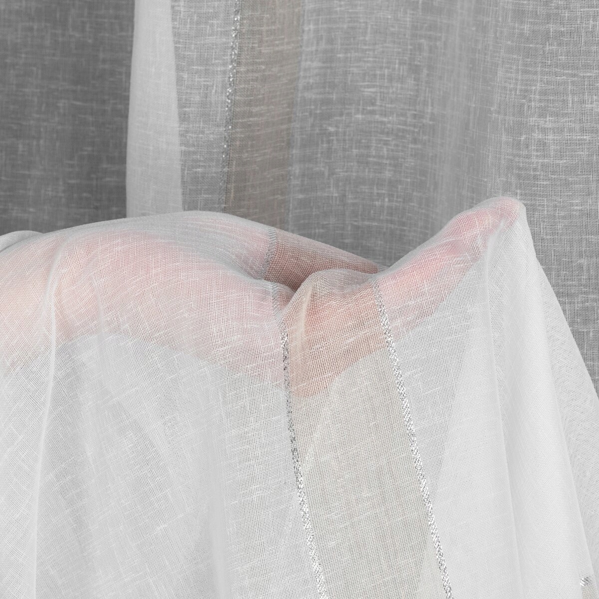 Tkanina firanowa matowa z pionowymi paskami wykończona obciążnikiem