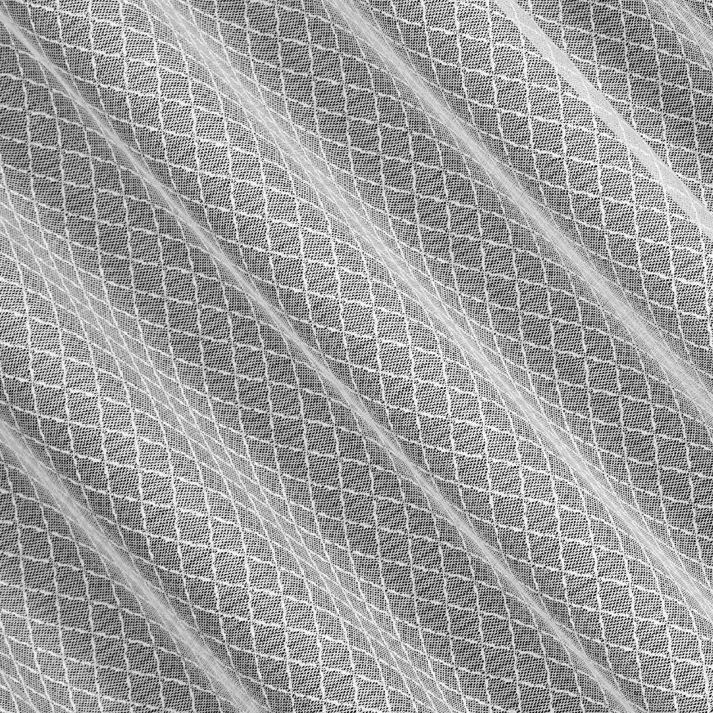 Tkanina firanowa z drobnej siateczki zdobiona żakardowym wzorem geometrycznym to elegancka i nowoczesna propozycja do dekoracji okien. Sama tkanina bazowa, wykonana z drobnej siateczki, jest lekka i delikatnie prześwitująca, co pozwala na swobodne przenikanie naturalnego światła do wnętrza, zachowując jednocześnie poczucie prywatności. Struktura siateczki jest subtelna, ale jednocześnie wytrzymała, co sprawia, że firana jest trwała, a jej wygląd pozostaje nienaruszony przez długi czas. Głównym elementem dekoracyjnym tej tkaniny jest żakardowy wzór geometryczny. Żakardowy wzór powstaje poprzez precyzyjne przeplatanie nici o różnych grubościach i kolorach, co nadaje tkaninie lekko wypukłą teksturę. Dzięki temu, geometryczny wzór jest wyraźnie wyczuwalny pod palcami i widoczny na tle delikatnej siateczki, tworząc ciekawy kontrast. Taka firana będzie doskonałym wyborem do salonu, jadalni czy sypialni, wprowadzając do pomieszczenia poczucie lekkości, ale jednocześnie odrobinę wyrafinowanego stylu.