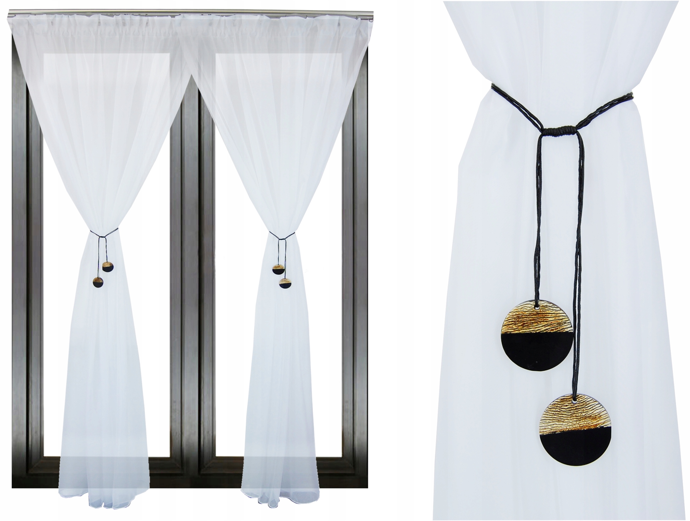 Cena dotyczy dwóch części firany po 200 cm + 2 podwiązania.