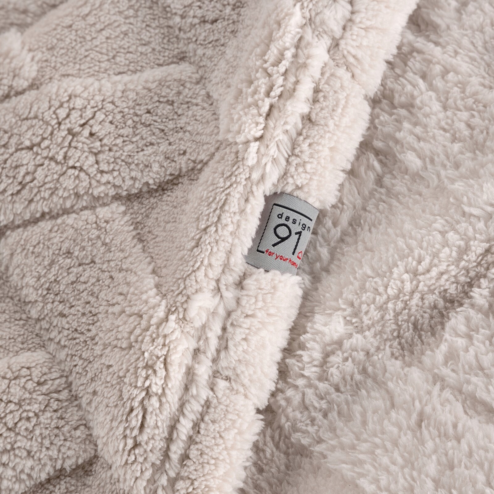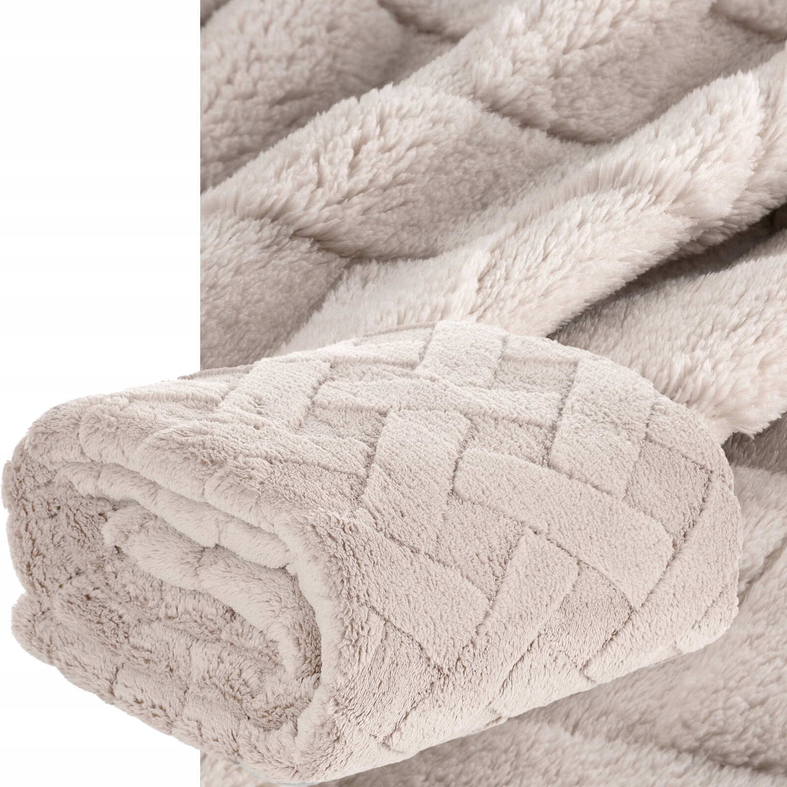 Koc narzuta 170 cm x 210 cm bardzo miękki w dotyku z efektem 3d beż