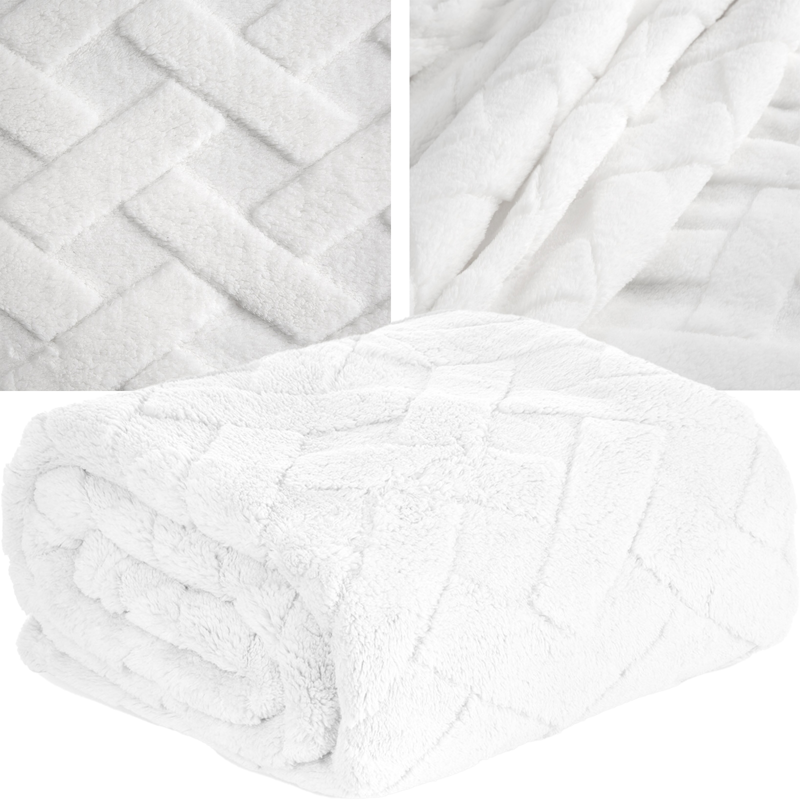 Koc narzuta 150×200 biały gruby mięciutki puszysty