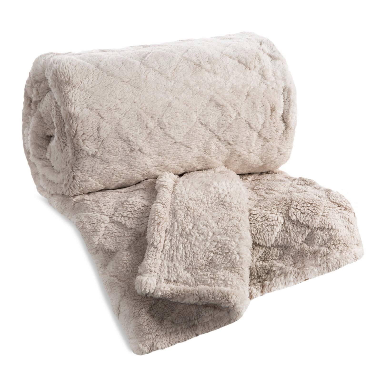 Koc narzuta 170 cm x 210 cm bardzo miękki w dotyku z efektem 3d beż