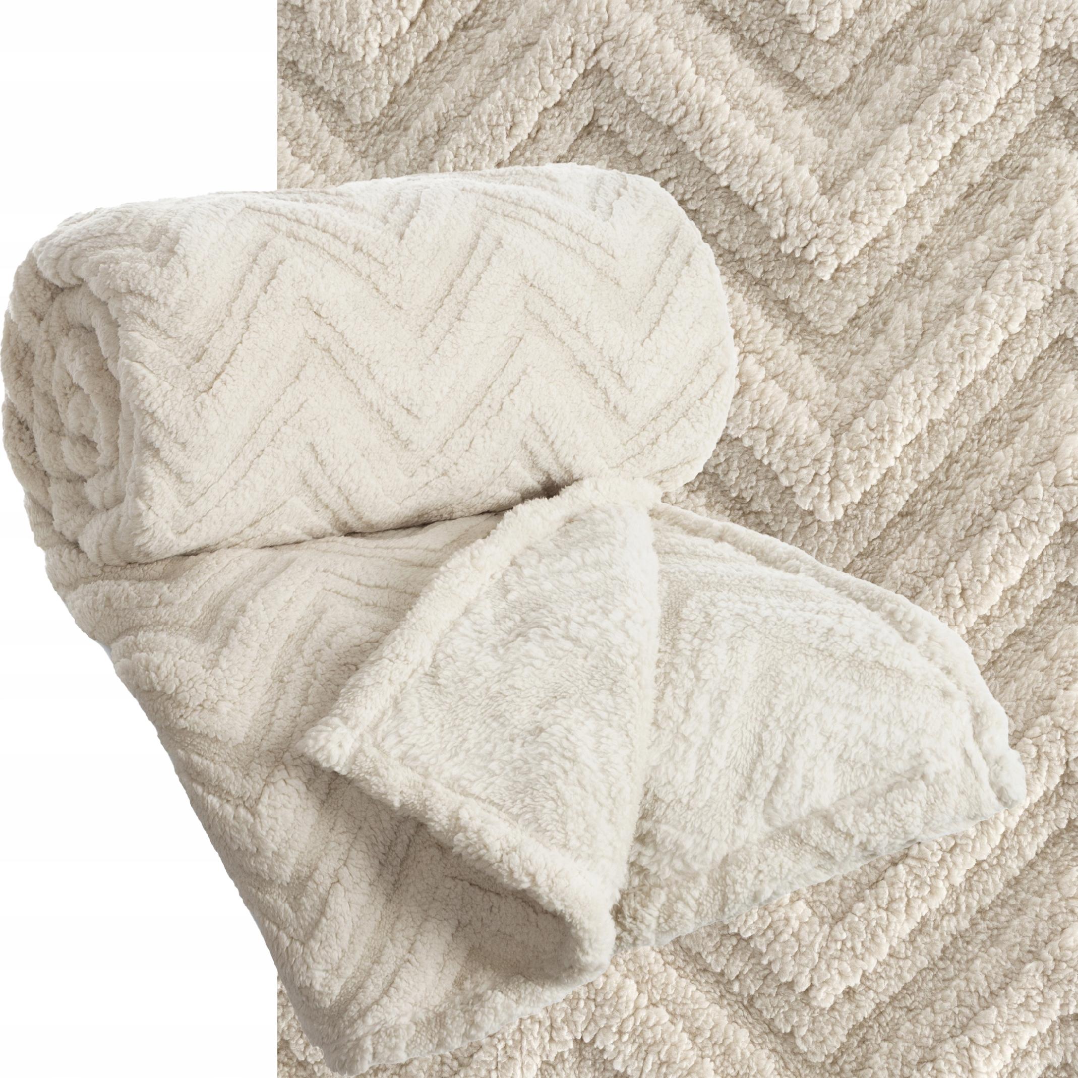 Koc narzuta 150×200 gruby mięciutki puszysty jodełka beżowy