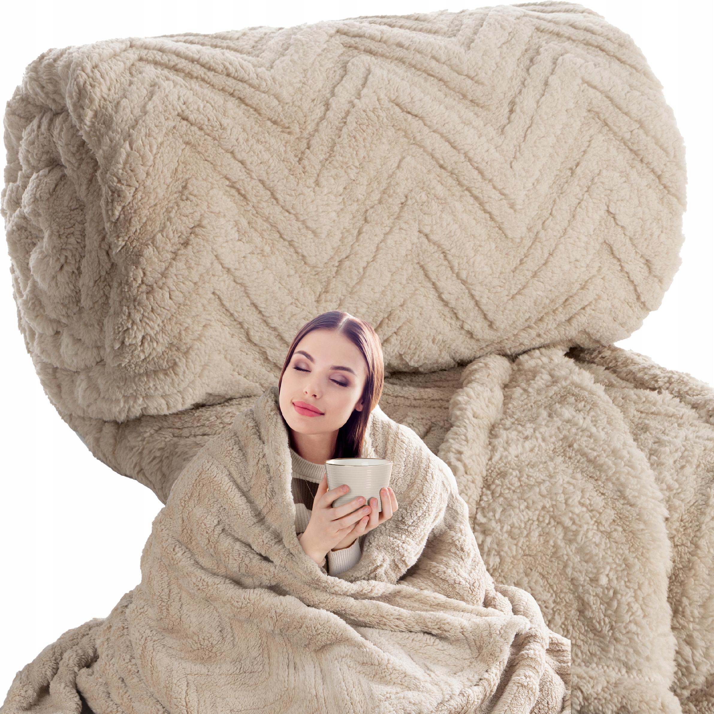Koc narzuta 150×200 gruby mięciutki puszysty jodełka ciemny beżowy