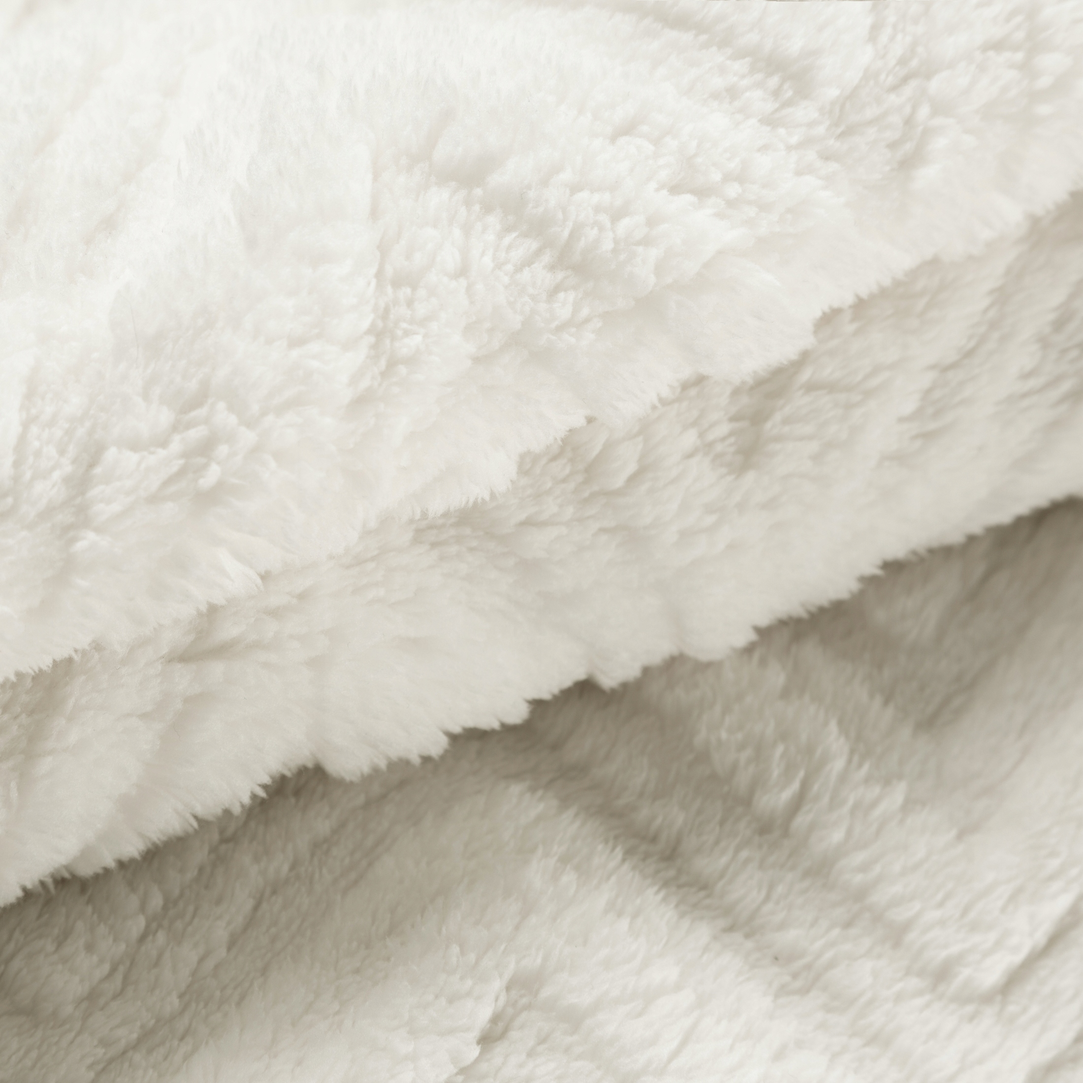 Koc narzuta 150×200 gruby mięciutki puszysty jodełka kremowy