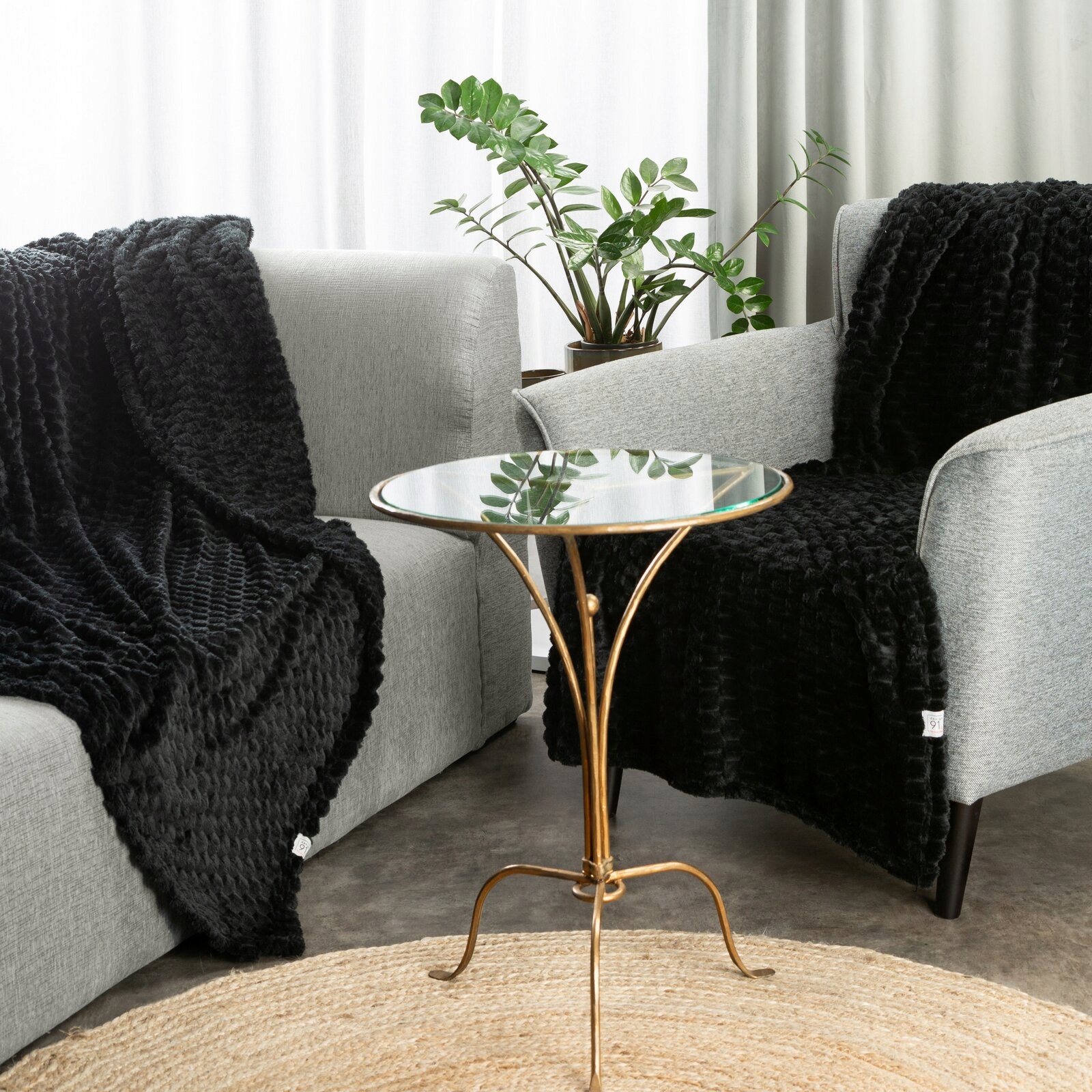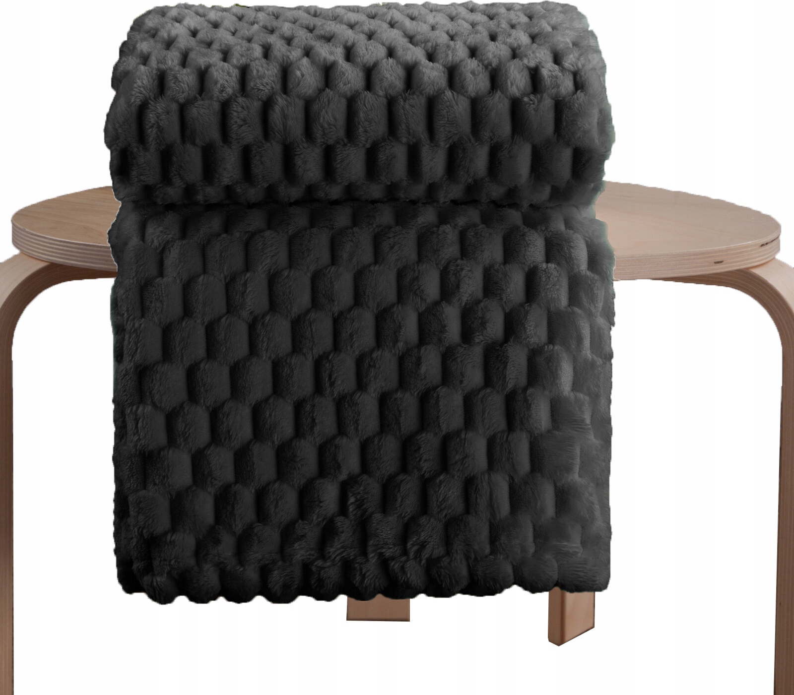 Czarny, bardzo miękki w dotyku koc FLANO z efektem 3D rozmiar 170 cm x 210 cm
