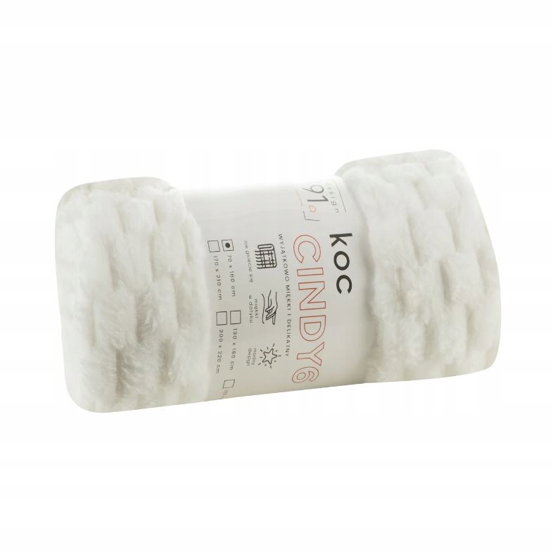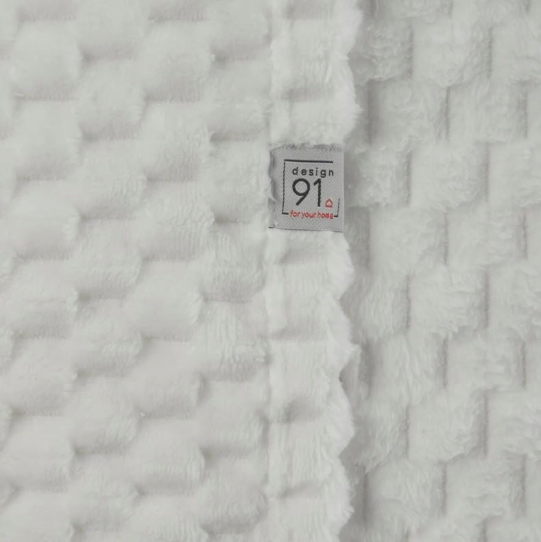 Bardzo miękki i miły w dotyku koc CINDY6 z wytłaczanym wzorem 3D w kolorze Białym