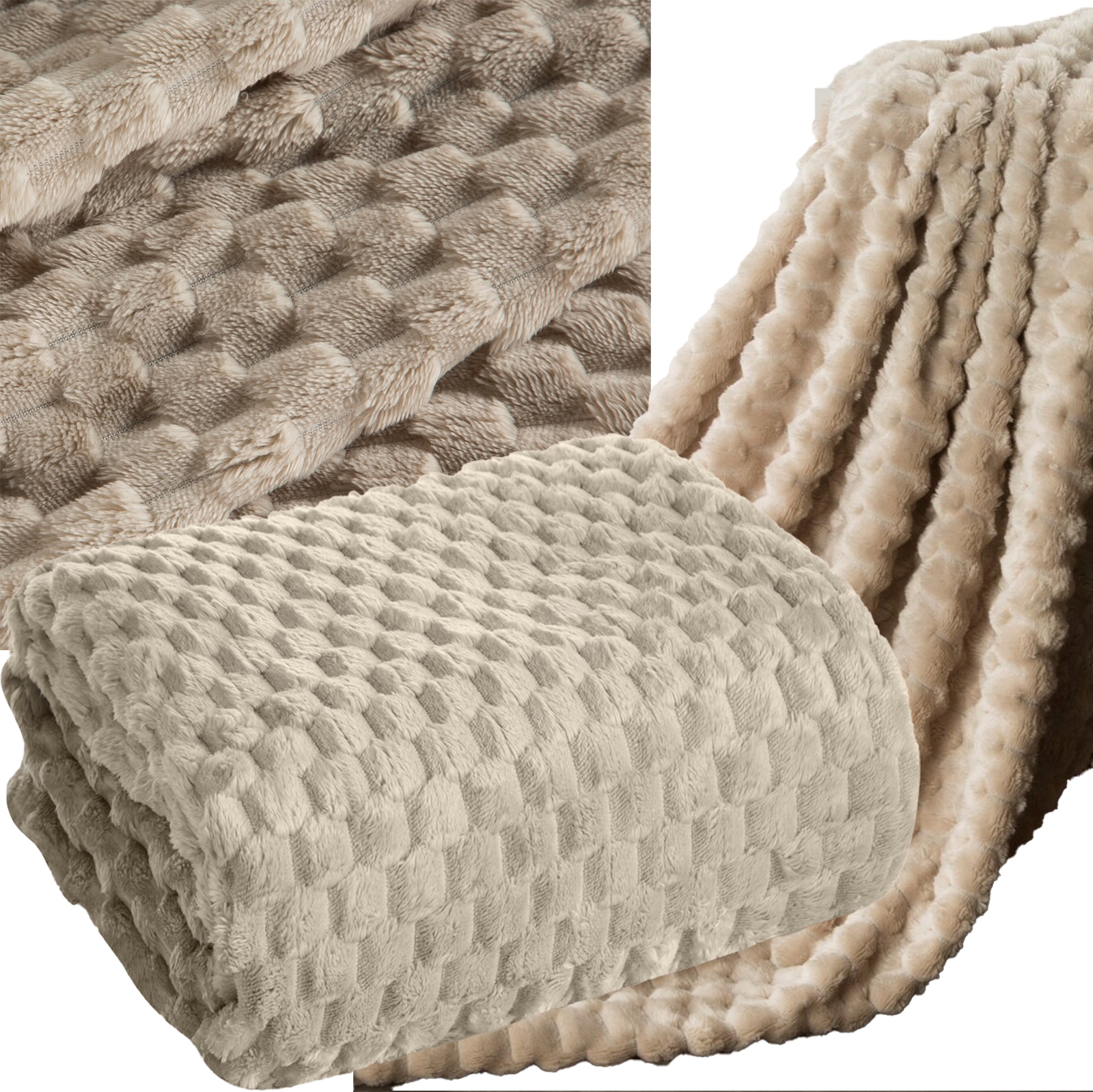 Koc narzuta 170 cm x 210 cm bardzo miękki w dotyku z efektem 3d beż