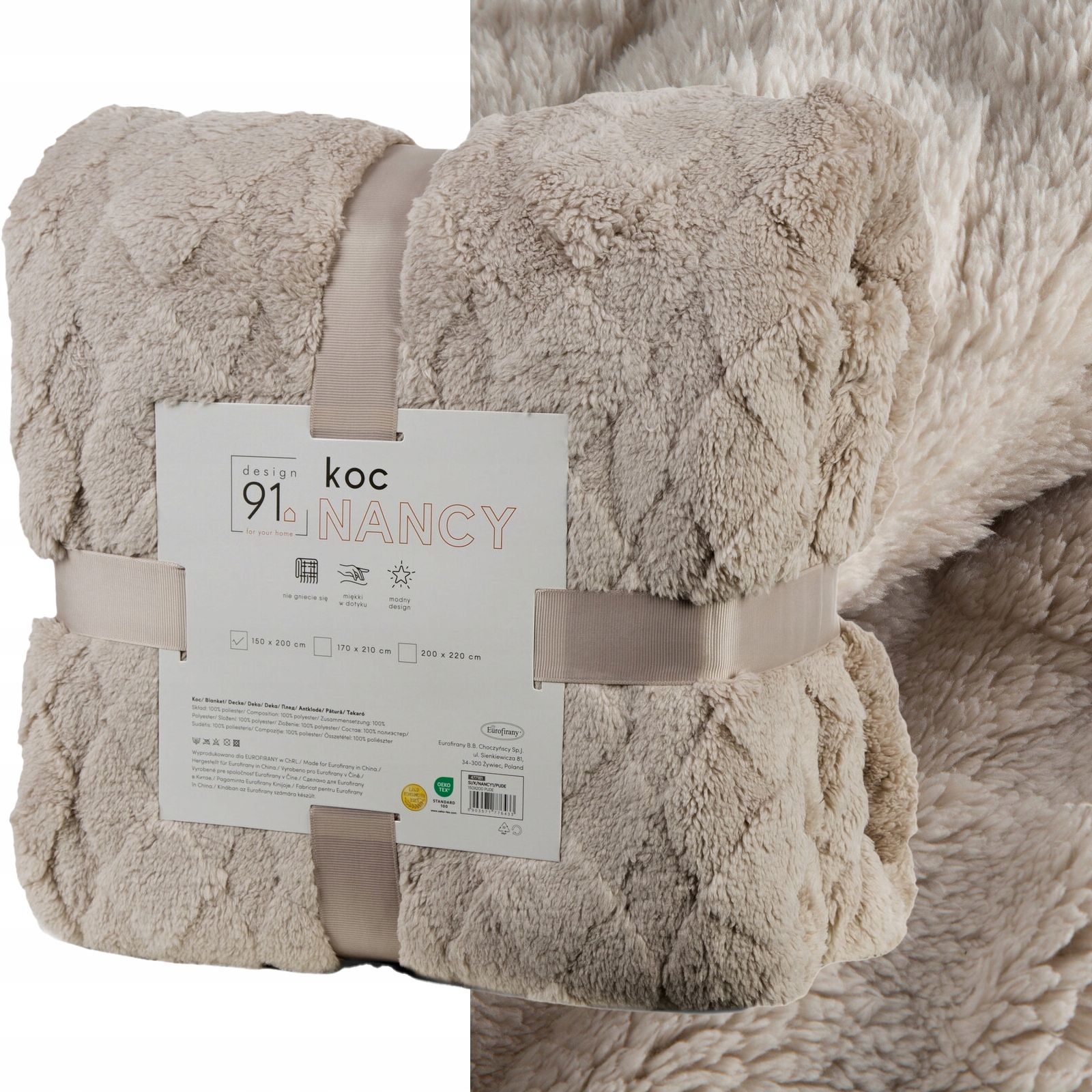 - Skład: 100% poliester (flano)