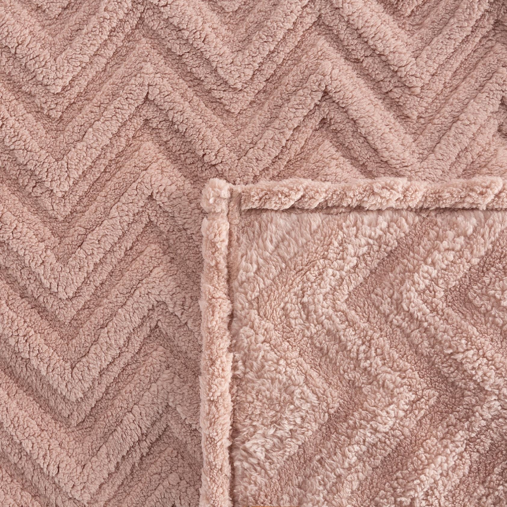 Koc narzuta 170×210 gruby mięciutki puszysty jodełka jasny puder