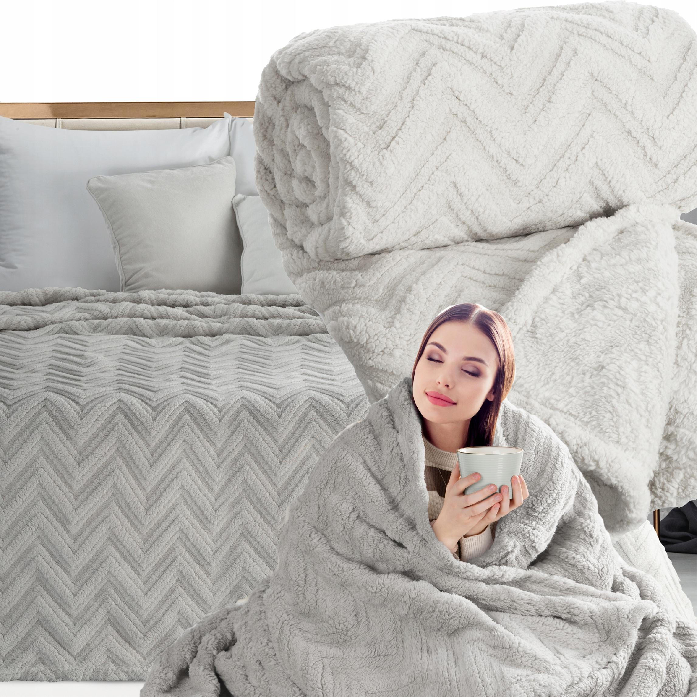 Koc narzuta 170×210 gruby mięciutki puszysty jodełka srebrny