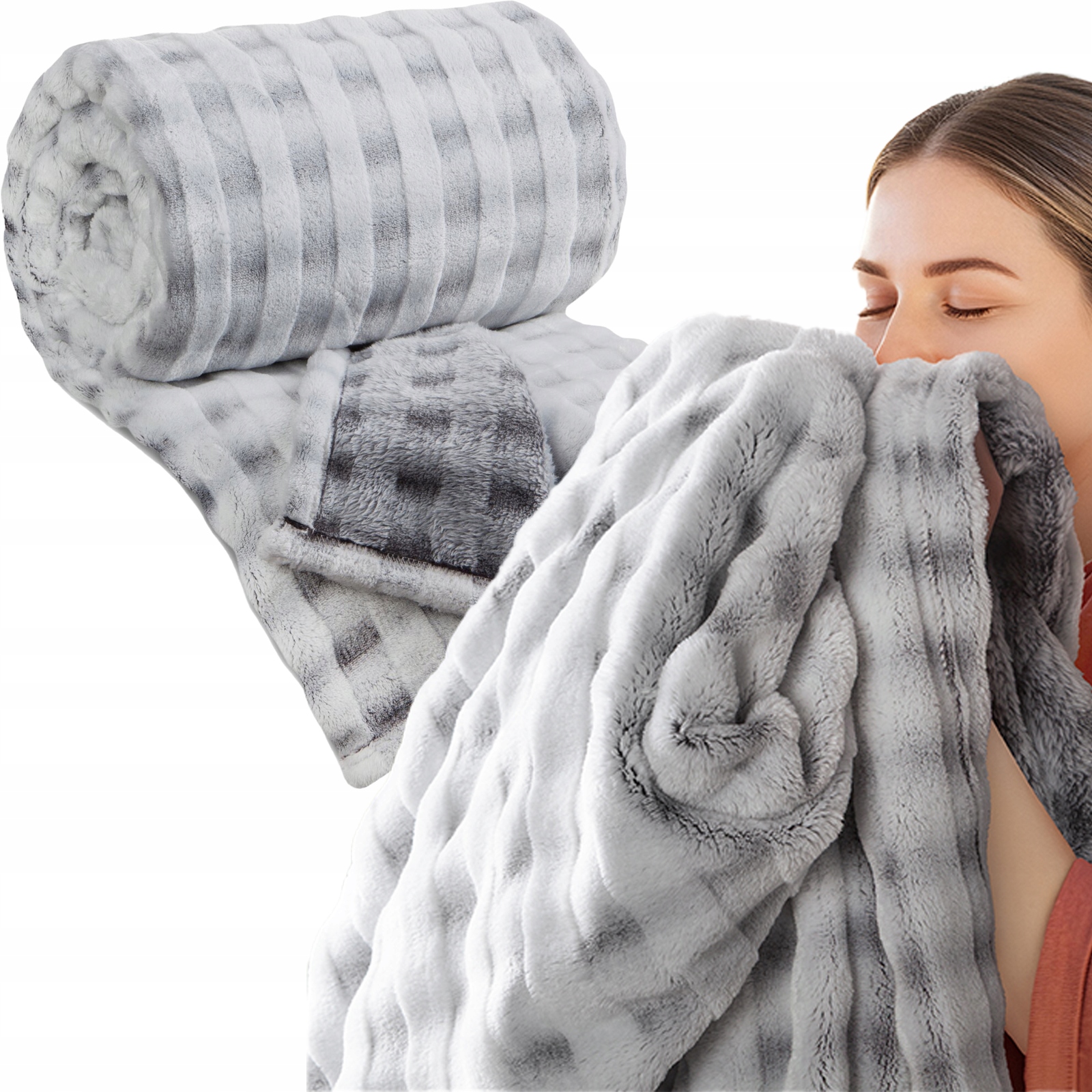 Koc narzuta 70 cm x 160 cm bardzo miękki w dotyku z efektem 3d stalowy