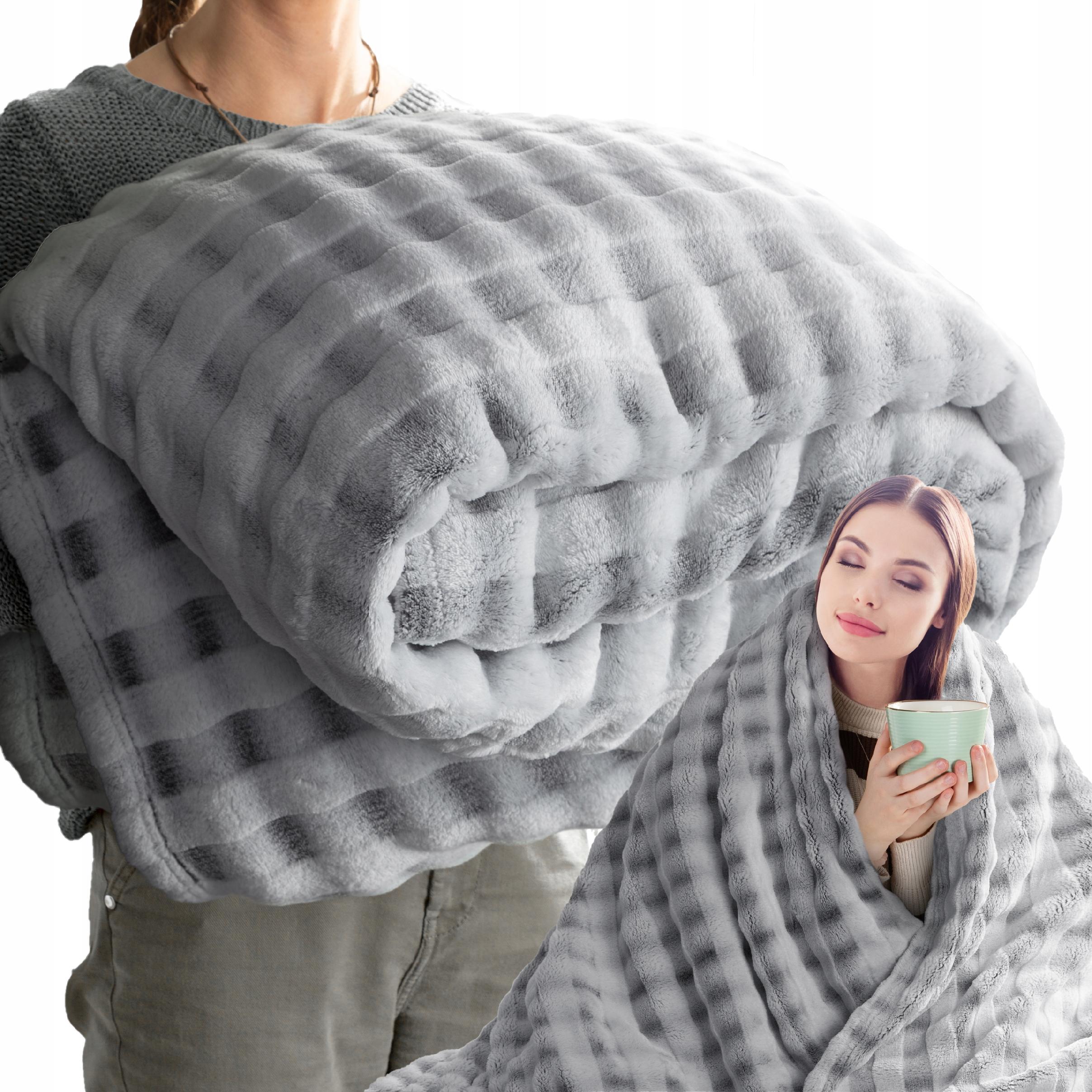 Koc narzuta 170×210 gruby mięciutki puszysty stalowy