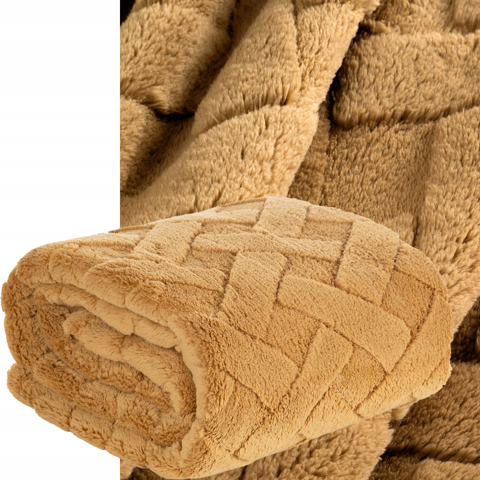 Koc narzuta 170×210 miodowy gruby mięciutki puszysty