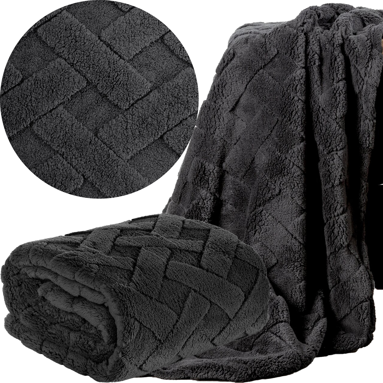 Koc narzuta 170×210 stalowy gruby mięciutki puszysty