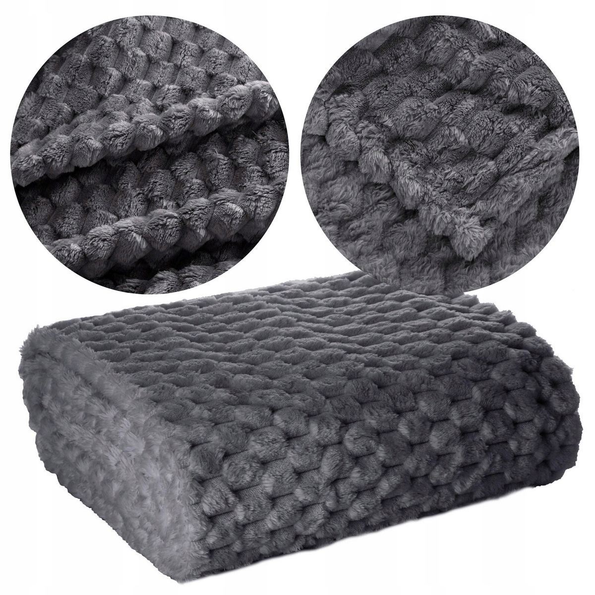 Koc narzuta 70 cm x 160 cm bardzo miękki w dotyku z efektem 3d stalowy