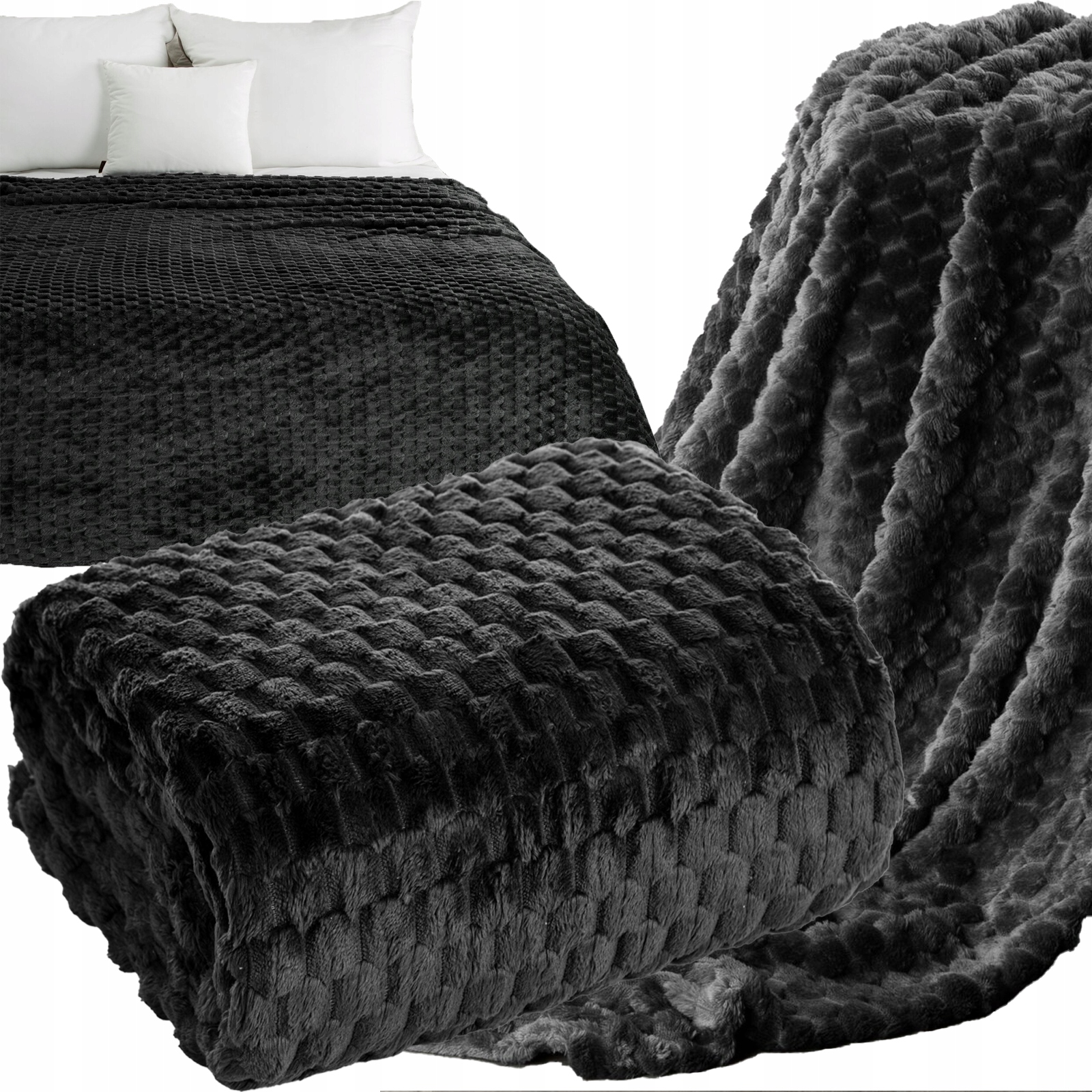 Koc narzuta 200 cm x 220 cm bardzo miękki w dotyku z efektem 3d czarny