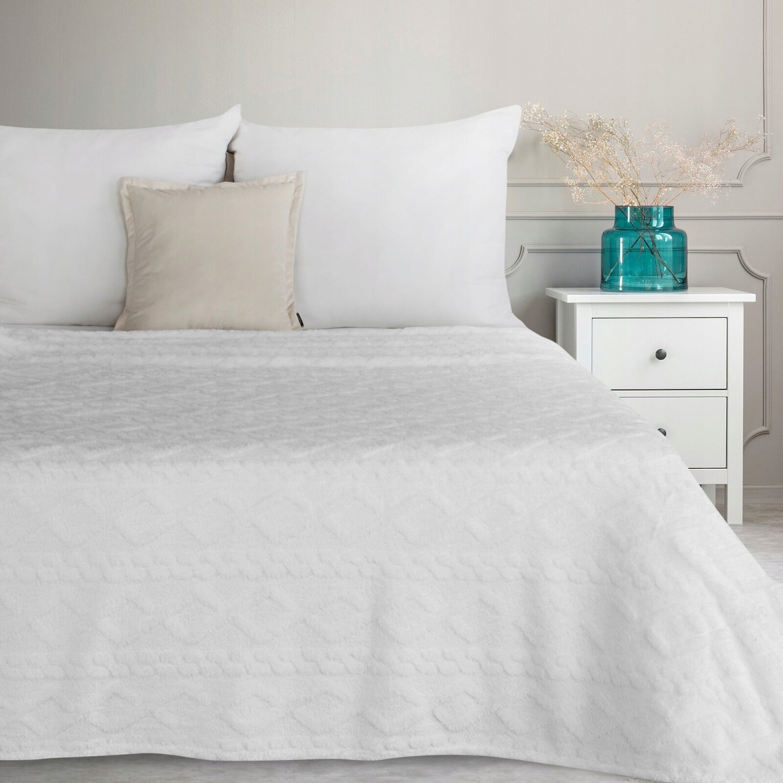 Koc narzuta mięciutki gruby 150 cm x 200 cm biały