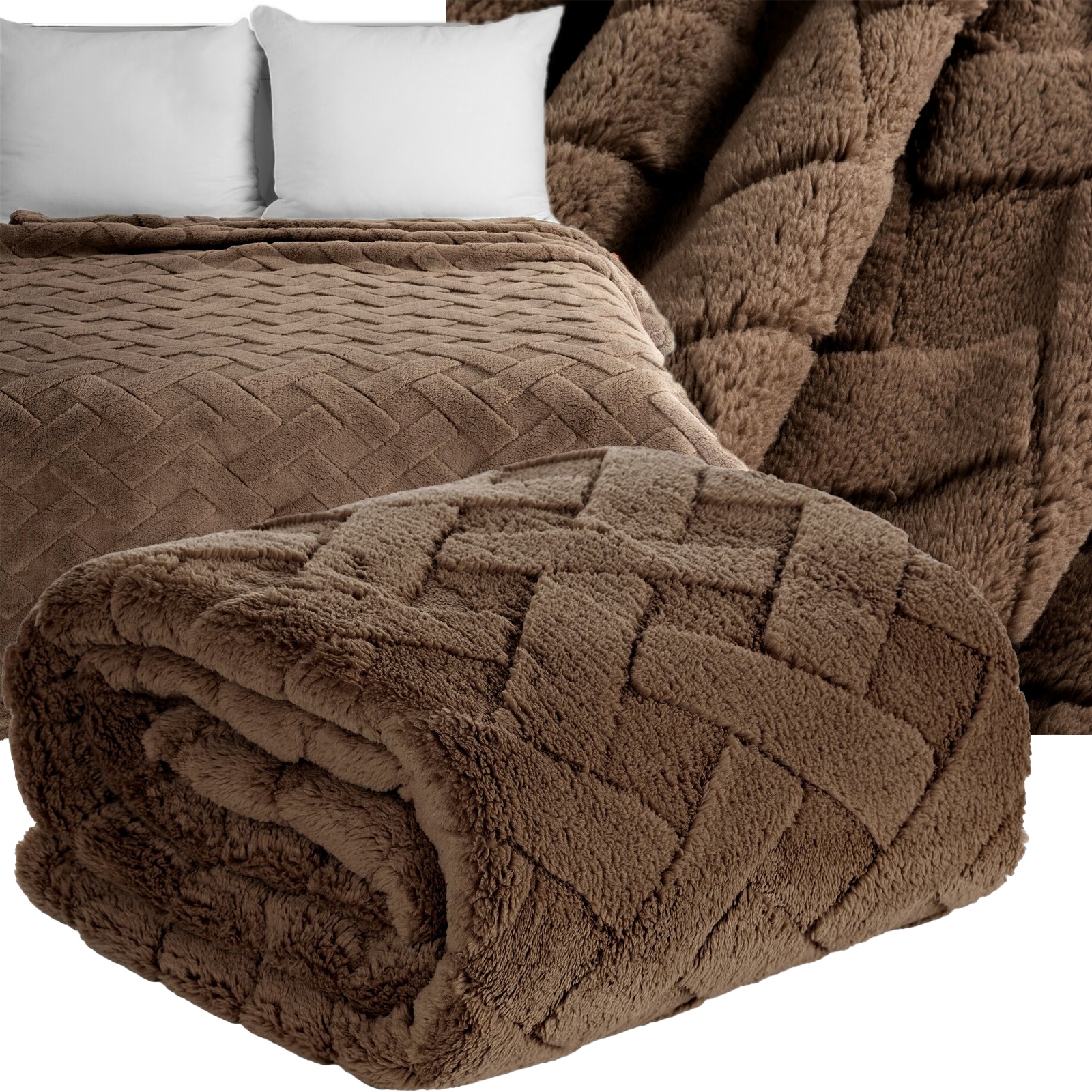 Koc narzuta 200×220 c.brąz gruby mięciutki puszysty
