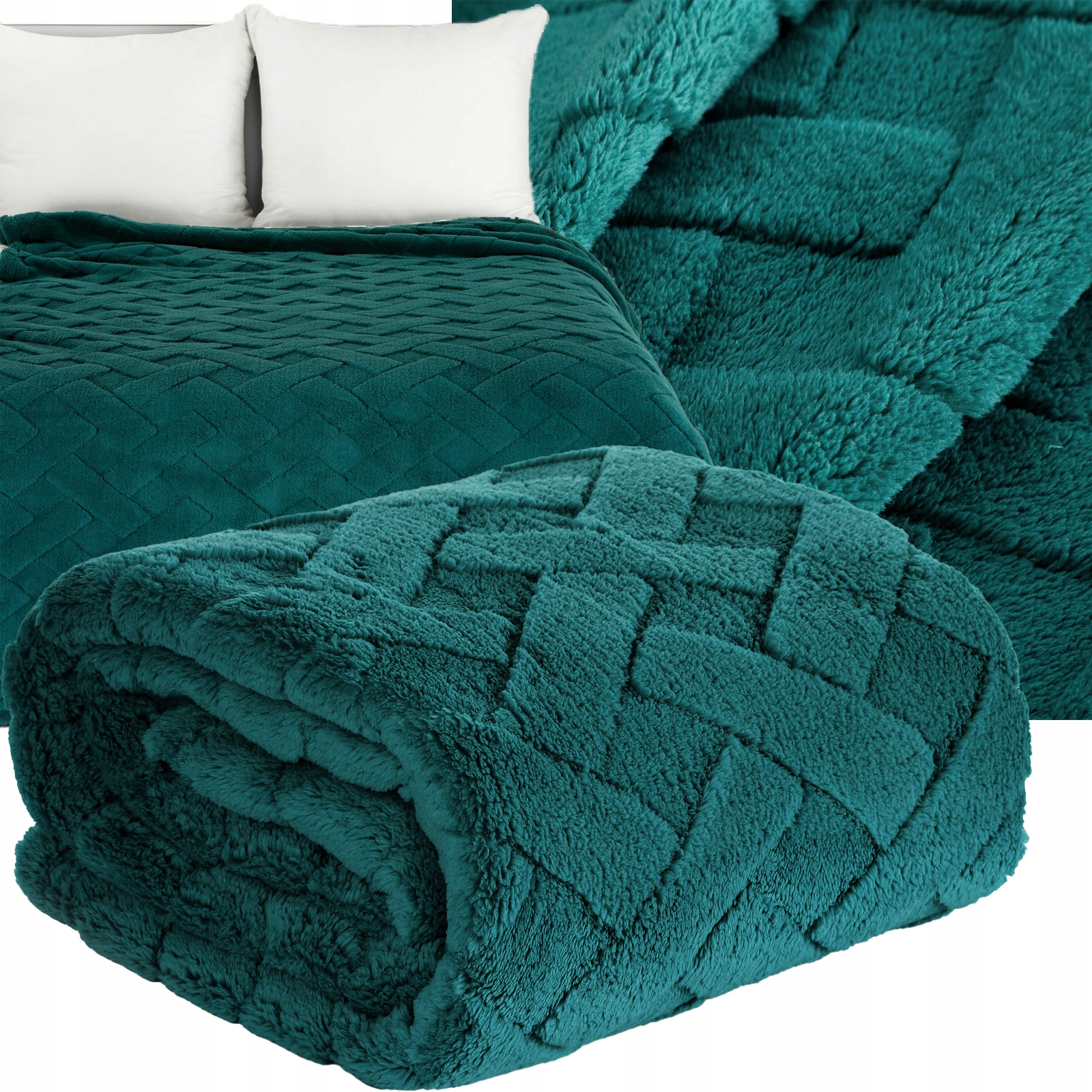 Koc narzuta 200×220 c.zielony gruby mięciutki puszysty