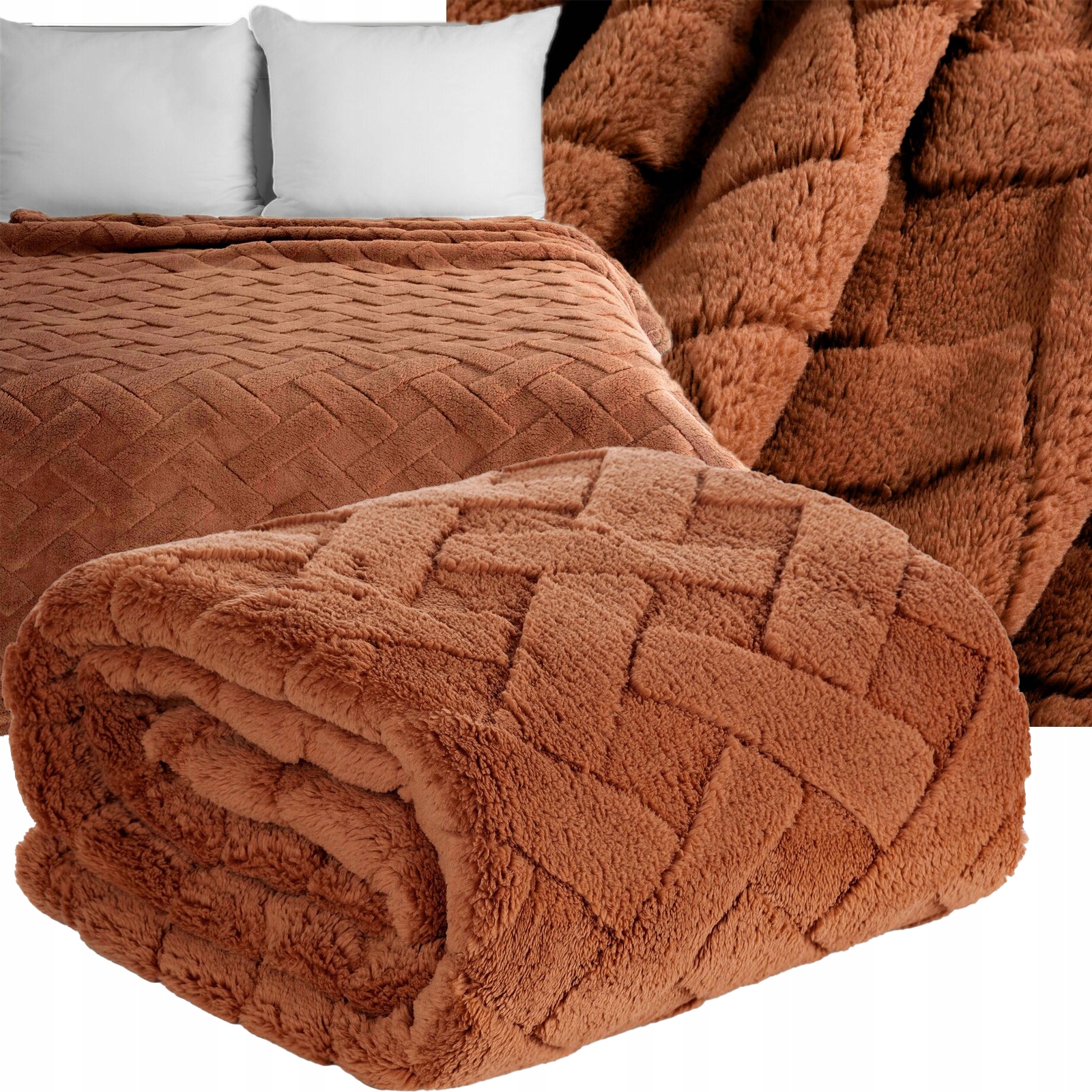 Koc narzuta 200×220 ceglasty gruby mięciutki puszysty