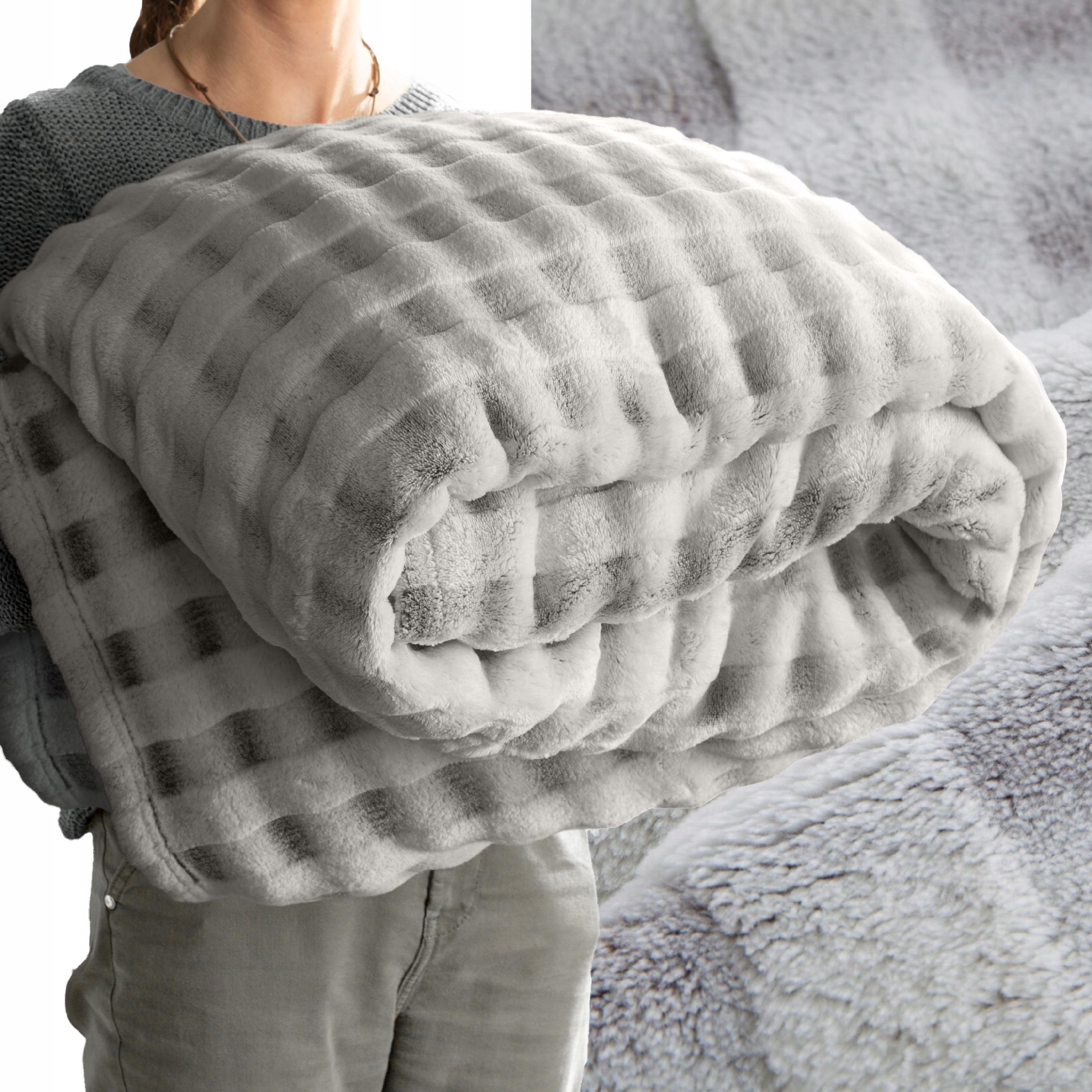 Koc narzuta 150 cm x 200 cm bardzo miękki w dotyku z efektem 3d stalowy