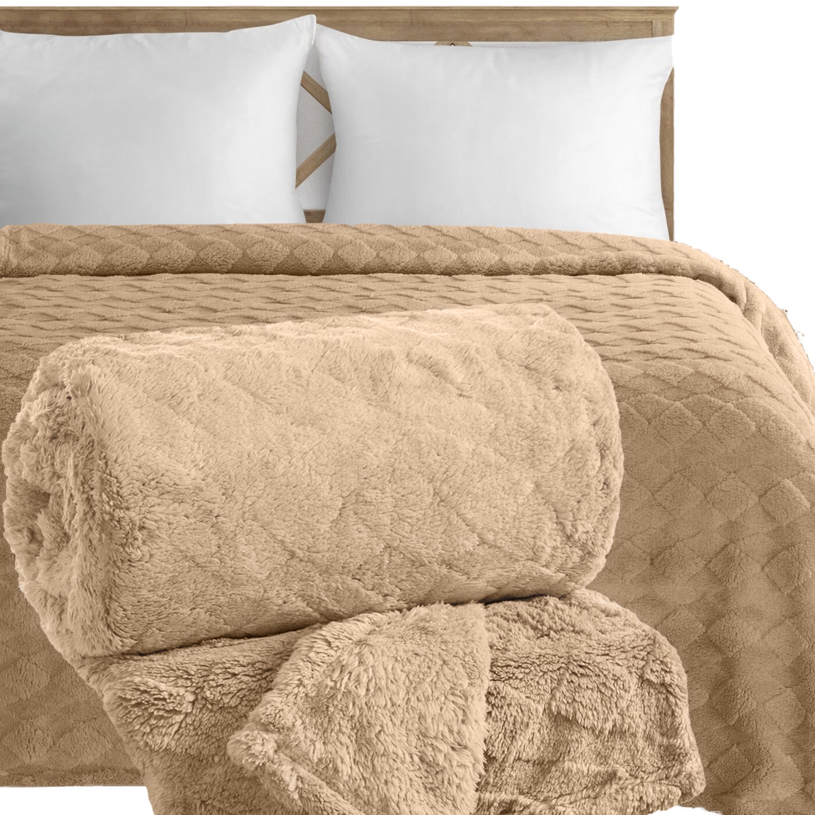 Koc narzuta 200×220 gruby mięciutki puszysty ciemny beżowy