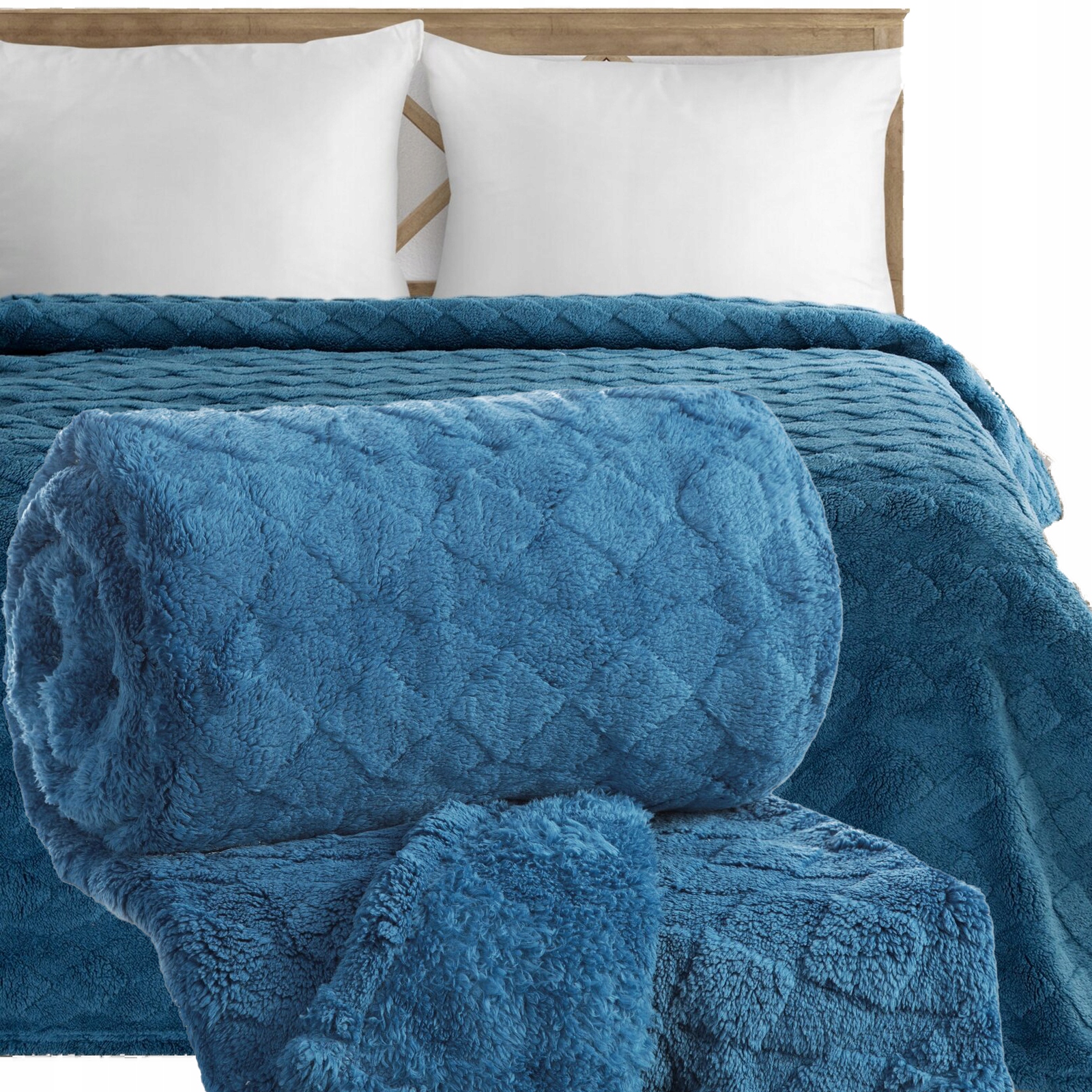 Koc narzuta 200×220 gruby mięciutki puszysty granatowy