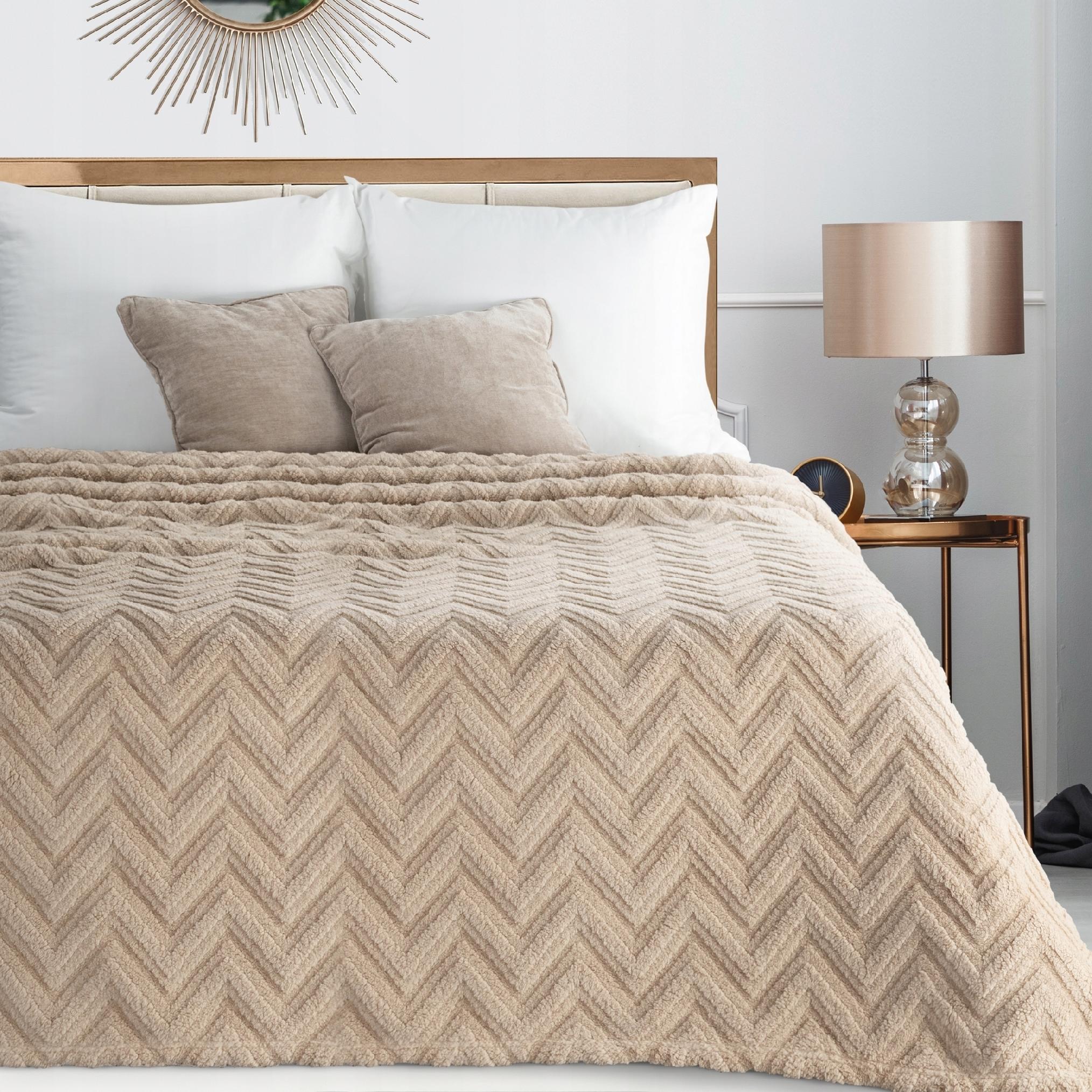 Koc narzuta 200×220 gruby mięciutki puszysty jodełka ciemny beżowy