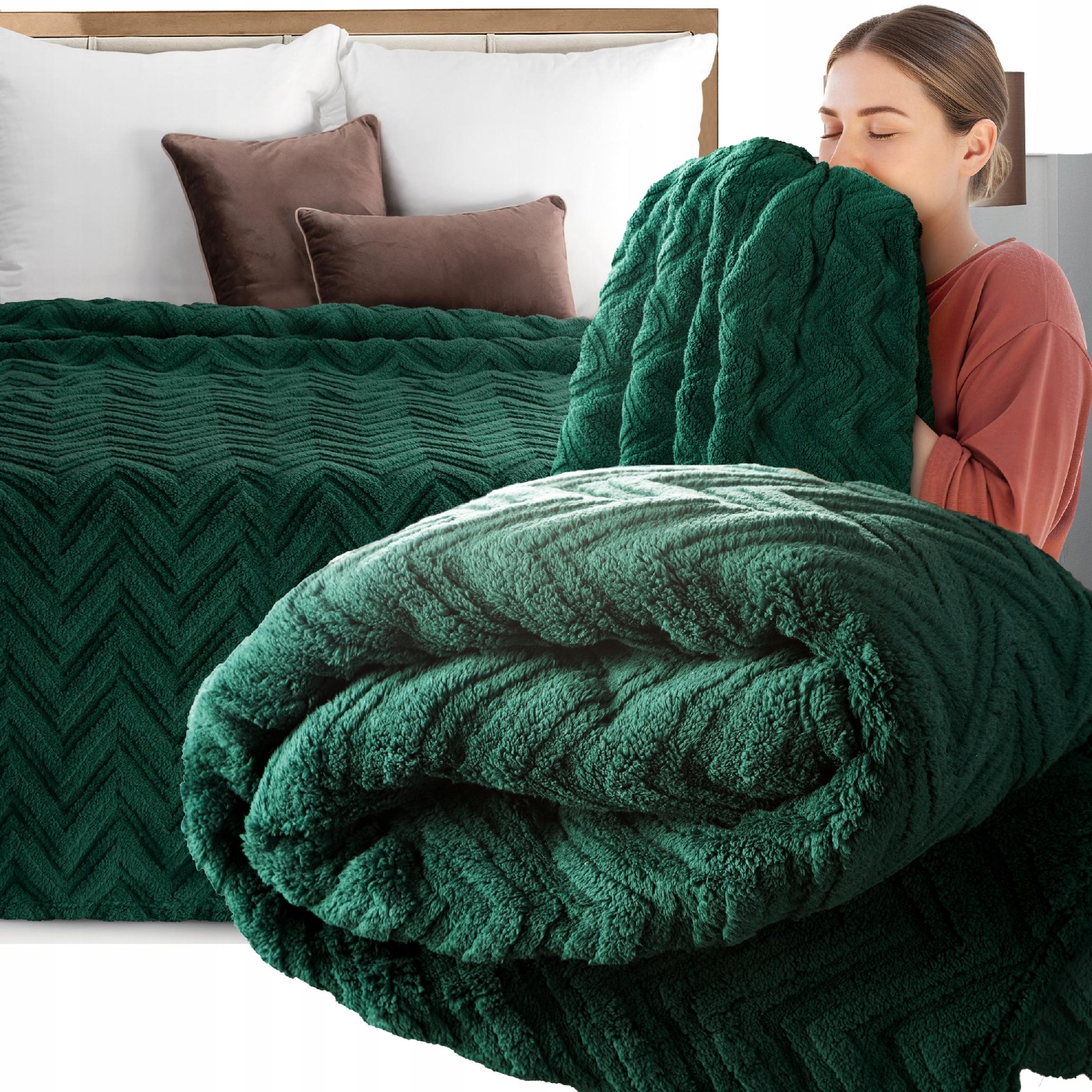 Koc narzuta 200×220 gruby mięciutki puszysty jodełka ciemny zielony