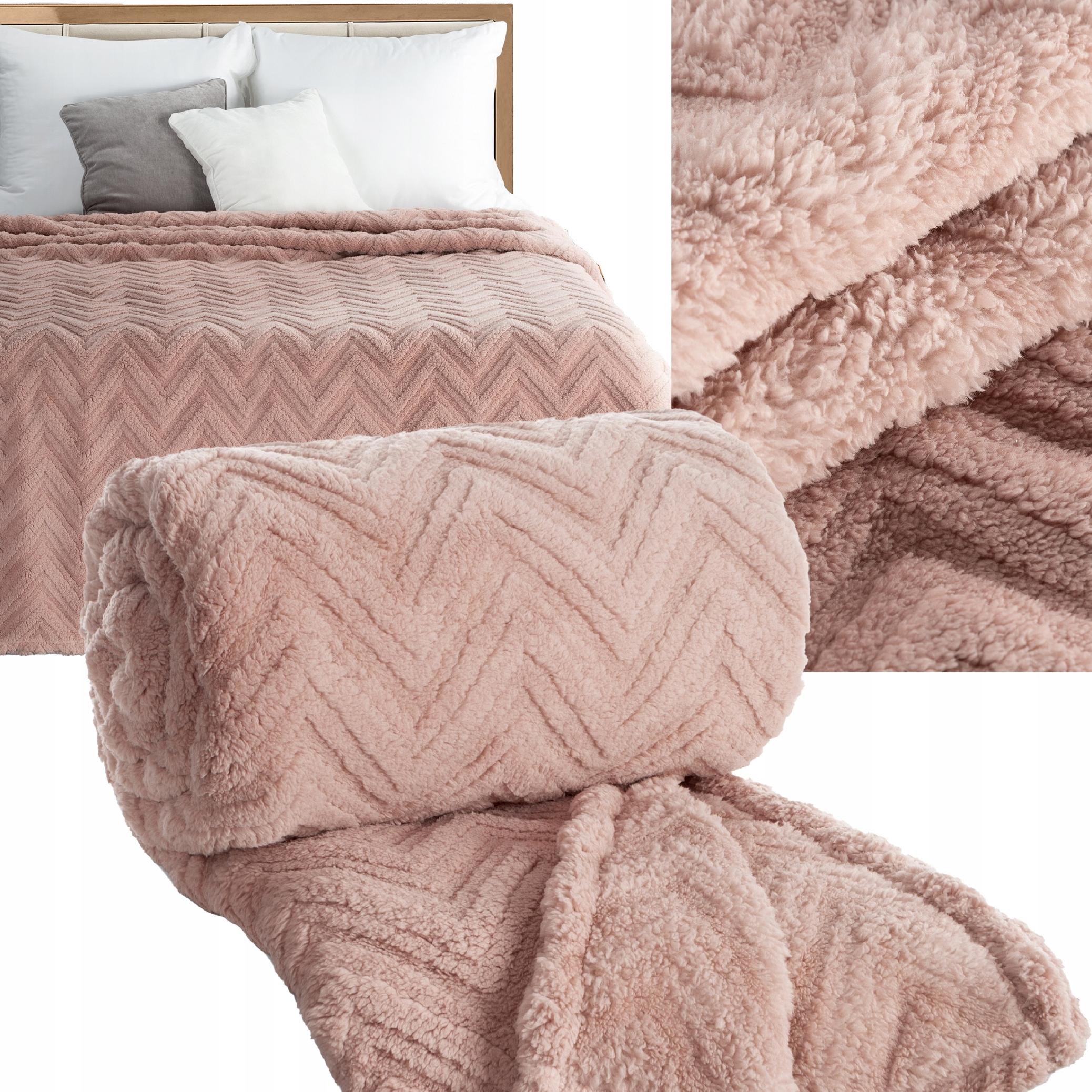 Koc narzuta 200×220 gruby mięciutki puszysty jodełka jasny puder
