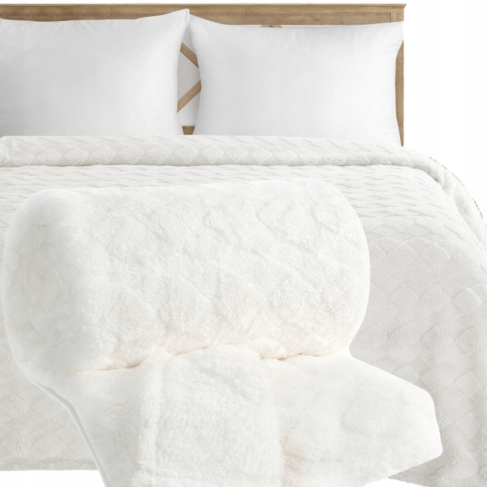 Koc narzuta 200×220 gruby mięciutki puszysty kremowy