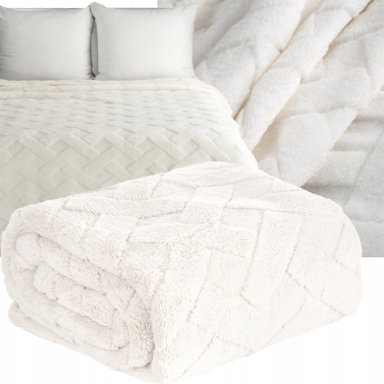 Koc narzuta mięciutki gruby 150 cm x 200 cm biały