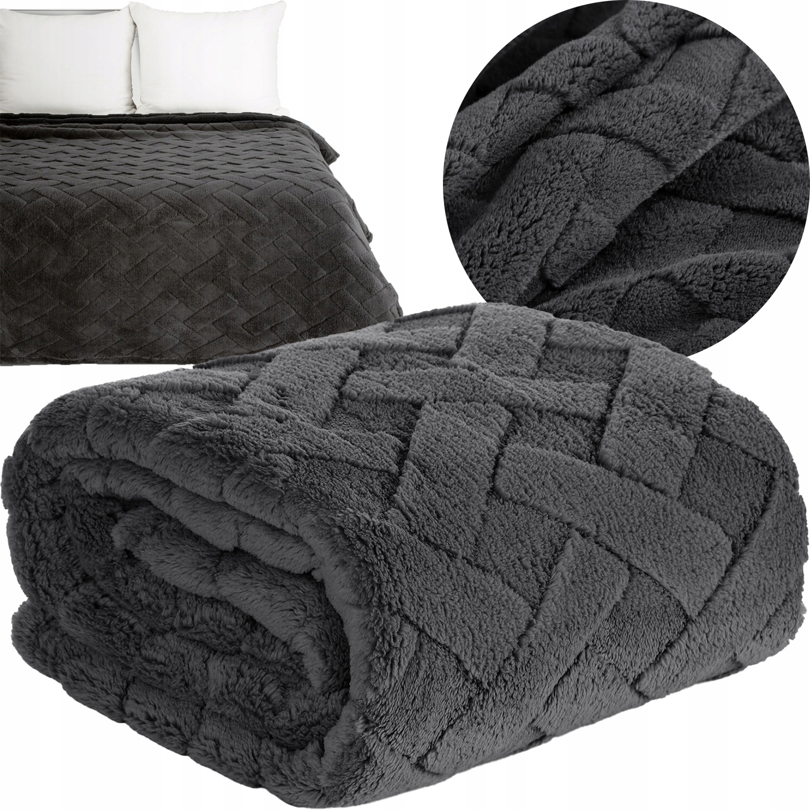 Koc narzuta 170 cm x 210 cm bardzo miękki w dotyku z efektem 3d stalowy